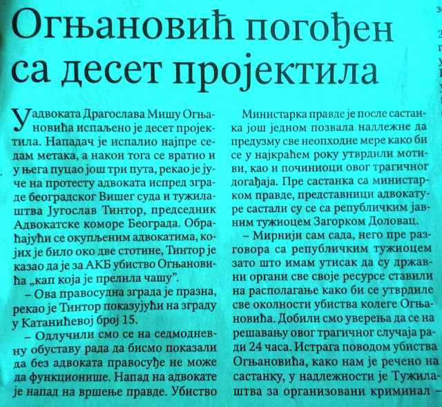 Ognjanović pogođen sa deset projektila
